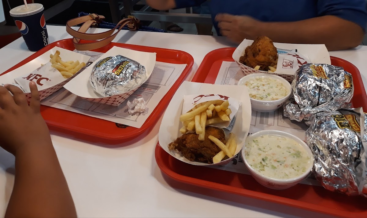 Really nice KFC. No coffee. No honey or jelly for the biscuits. Service was slow. But other than that, food was great and restaurant was clean.